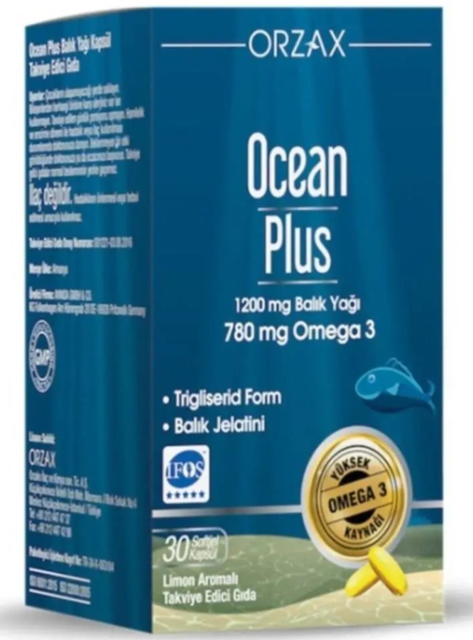 Рыбий жир Orzax Ocean Plus 1200 мг содержит ЭПК и ДГК - две жирные кислоты омега-3, которые помогают поддерживать и сохранять здоровье сердечно-сосудистой и нервной систем. Омега-3 жирные кислоты считаются «хорошими» жирами, важными для клеточного обмена, здоровья сердца и метаболизма и способствуют поддержанию уровня триглицеридов. Не является лекарственным средством.