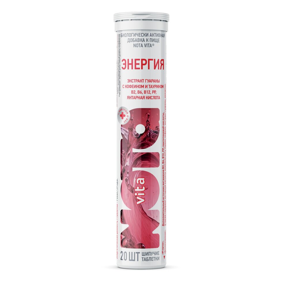 «Нота Вита Энергия» представляет собой сбалансированную композицию тонизирующих, энергетических и незаменимых питательных веществ: янтарная кислота, аминокислота таурин, кофеин, экстракт гуараны, инозитол, витамины В2, В6, В12.