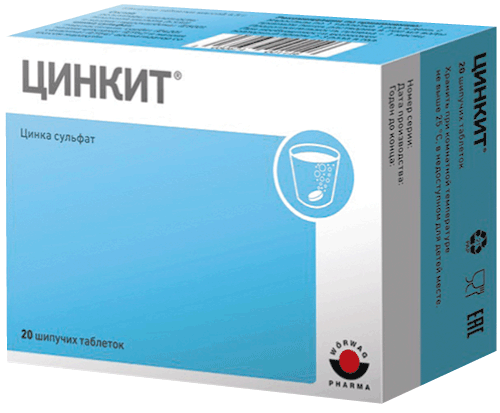 Таблетки шипучие1 табл.активное вещество: цинк (в виде цинка сульфата)10 мгчто составляет 66% рекомендуемой суточной нормы потребления (см. ТР ТС 022/2011 «Пищевая продукция в части ее маркировки»)