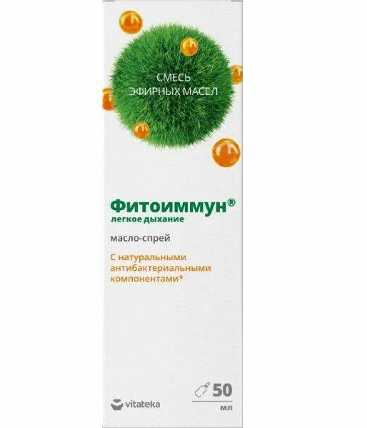 Композиция эфирных масел способствует защите от вирусов и бактерий в сезон простудных заболеваний. Фитоиммун® может быть рекомендован взрослым и детям для снижения бактериальной и вирусной нагрузки во вдыхаемом воздухе. В состав входят 100 % натуральные эфирные масла, которые помогают предотвратить распространение инфекции, дезинфицировать воздух помещений, насыщая его свежими ароматами. Смесь семи 100 % натуральных эфирных масел. Удобная форма масло-спрей.