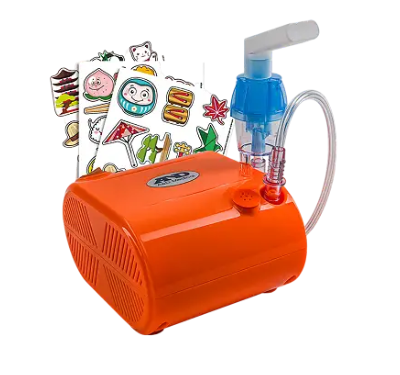 Компрессорный ингалятор CN-233 Детский, в ярком оранжевом цвете корпуса с комплектом декоративных наклеек, разработан компанией ЭЙ энд ДИ.