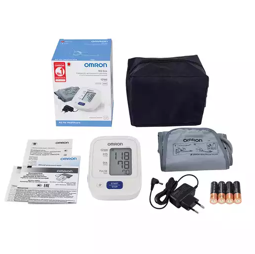 OMRON M2 Eco – автоматический тонометр на плечо в комплектации с веерообразной манжетой и адаптером. Простое и быстрое измерение артериального давления и пульса.