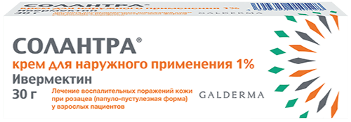 Механизм действия препарата Солантра® при лечении воспалительных поражений кожи при розацеа неизвестен, но может быть связан как с противовоспалительными эффектами ивермектина, так и со способностью ивермектина вызывать гибель клещей Demodex, которые, в свою очередь, являются фактором, вызывающим воспаление кожи.
