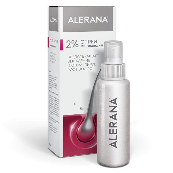 Местные побочные эффекты:Побочные эффекты, наблюдавшиеся в клинических исследованиях препарата Алерана®, в большинстве случаев представляли собой дерматит волосистой части головы.Реже наблюдались более выраженные случаи дерматита, проявляющиеся в виде покраснения, шелушения и воспаления.В редких случаях отмечались зуд головы, аллергический контактный дерматит, фолликулит, гипертрихоз (нежелательный рост волос на теле, включая рост волос на лице у женщин), себорея.Применение миноксидила может вызвать усиление выпадения волос при переходе от фазы покоя к фазе роста, при этом старые волосы выпадают, а на их месте вырастают новые. Это временное явление обычно наблюдается спустя 2-6 недель после начала лечения и постепенно прекращается в течение двух последующих недель (появление первых признаков действия миноксидила).Системные побочные эффекты (при случайном проглатывании препарата):Дерматологические заболевания: неспецифические аллергические реакции (кожная сыпь, крапивница),отек лица.Ды
