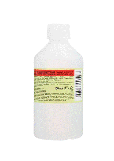 Не наносить на раны и слизистые оболочки. В случае попадания на слизистые оболочки глаза, их следует быстро и тщательно промыть водой и закапать 30% раствор сульфацила натрия (альбуцид), в случае необходимости обратиться к врачу.При случайном попадании внутрь следует немедленно сделать промывание желудка большим количеством воды, затем дать адсорбент (10–20 таблеток активированного угля). При необходимости проводится симптоматическая терапия.Средство легко воспламеняется! Не допускать контакта с открытым пламенем и включенными нагревательными приборами.Хлоргексидин сохраняет активность (хотя и несколько пониженную) в присутствии крови, гноя