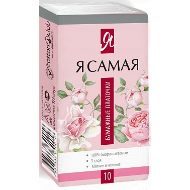 Я САМАЯ ПЛАТОЧКИ НОСОВЫЕ БУМАЖНЫЕ - целлюлозная салфетка белого цвета без запаха.
