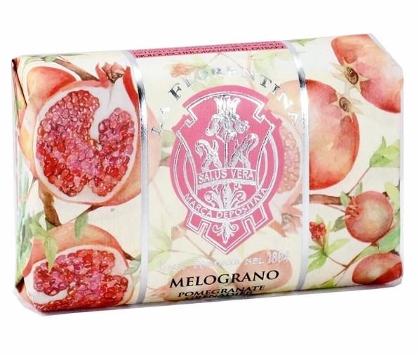 Мыло La Florentina - это душистый и красивый островок Италии, способный создать сказочое настроение в любой ванной комнате. Гранатовое мыло в обертке из вручную расписанной флорентийской бумаги станет отличным подарком по любому случаю, украсит ваш дом и наполнит его сладким, фруктовым ароматом спелого граната. Нежное итальянское мыло обогащено оливковым маслом, натуральными экстрактами и благоухает неповторимым фруктовым наслаждением. Мыло бережно заботится даже о самой чувствительной коже, не пересушивая ее, не вызывает раздражения и ощущения стянутости.