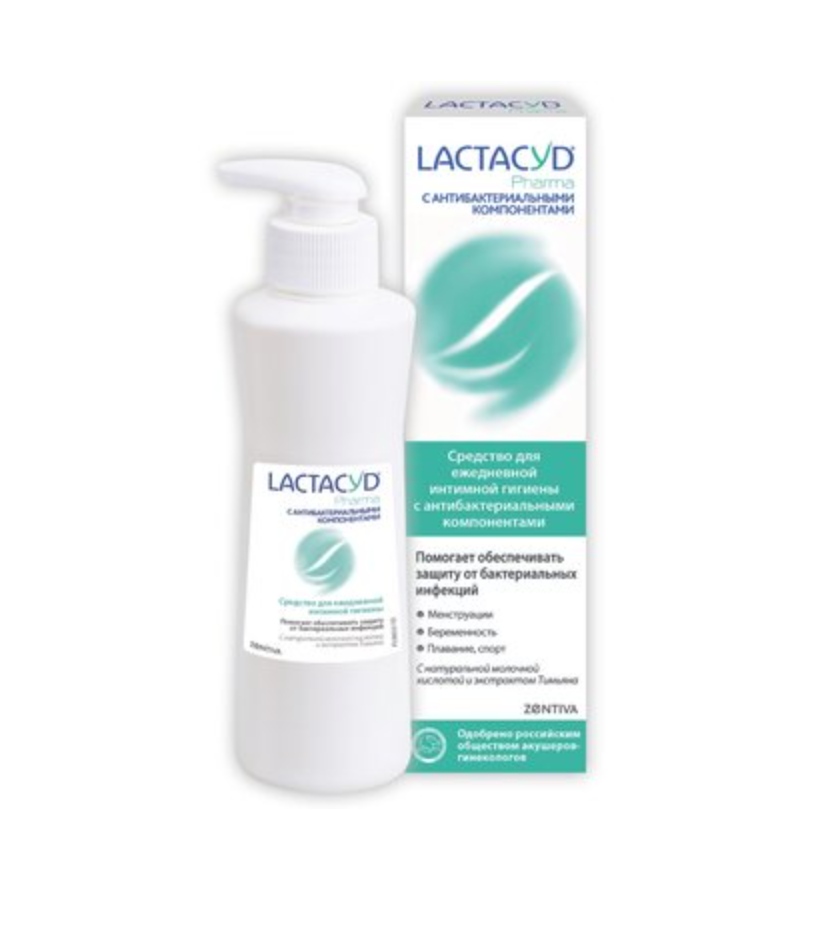 LACTACYD PHARMA с антибактериальными компонентами разработан специально для усиления естественной защиты интимной зоны в случаях, когда микрофлора женщины особенно ослаблена и повышен риск вагинальной инфекции, таких как: менструация, беременность, послеродовой период, прием лекарств.