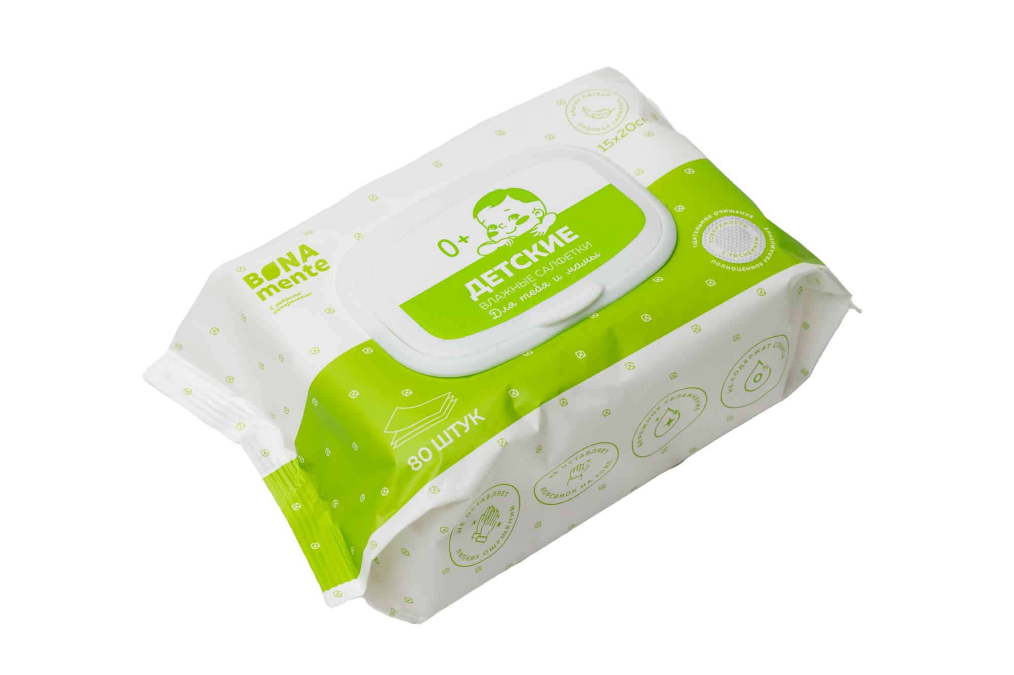 Одноразовые влажные гигиенические салфетки детские из мягкого нетканого полотна с тиснением. Не содержат спирта.
